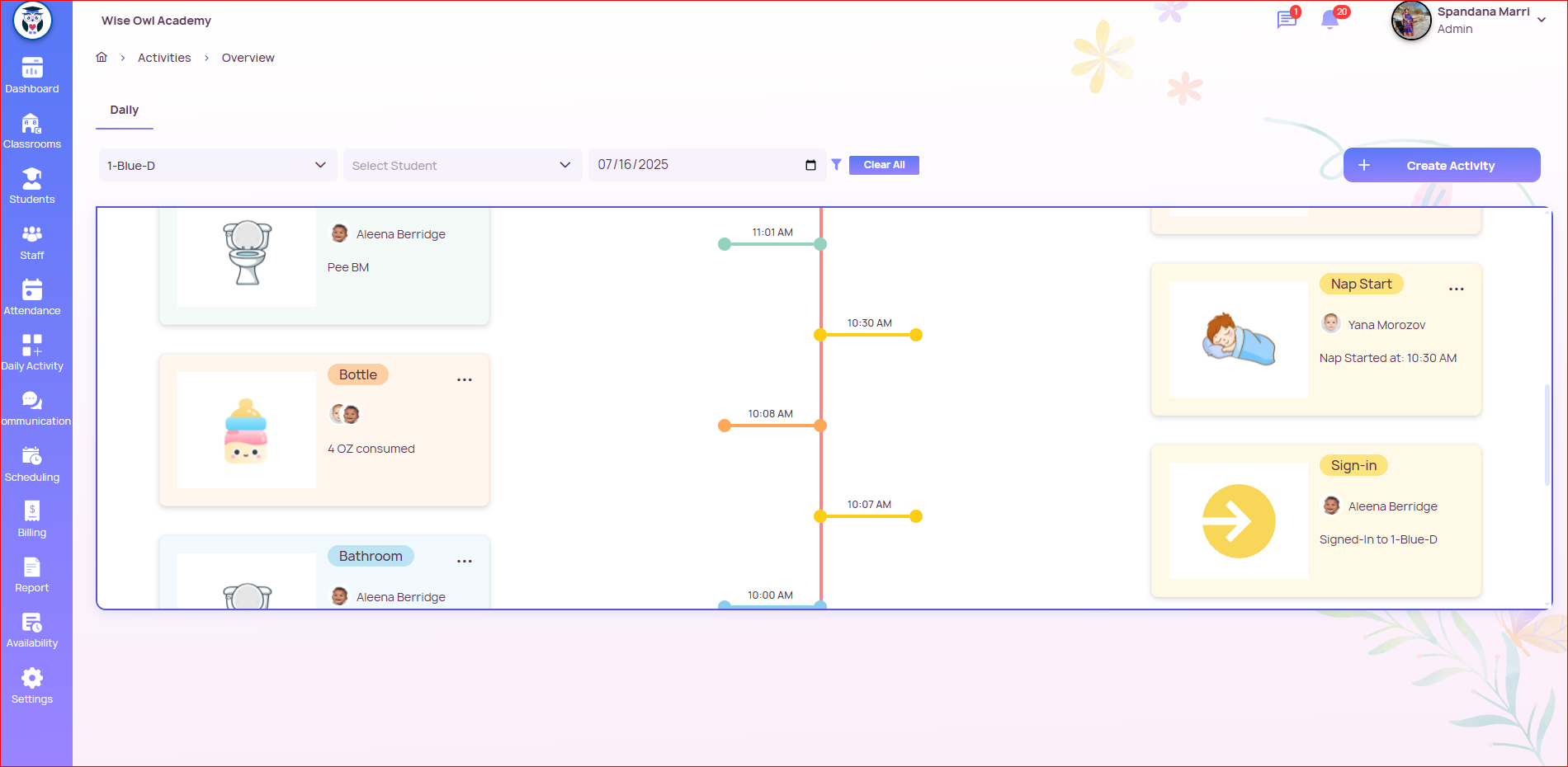 Note: Only staff with access with the particular classrooms can view & add activities in those classrooms