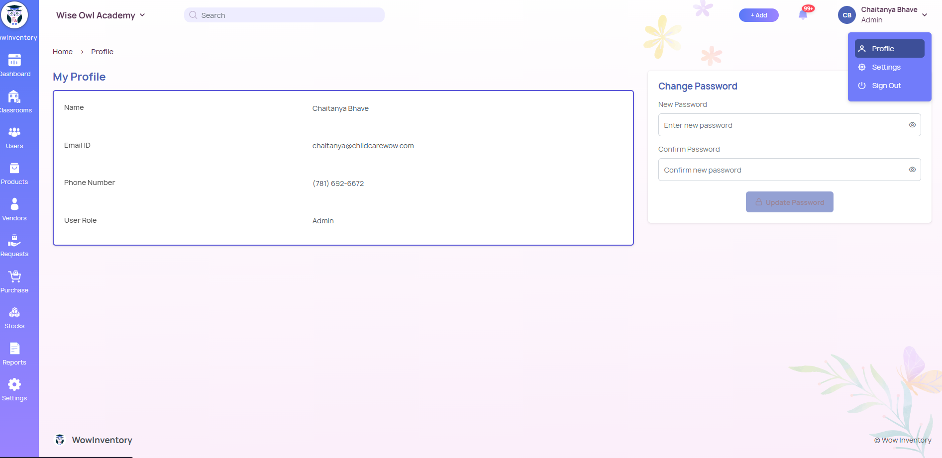 2. under change password, enter new password & confirm it