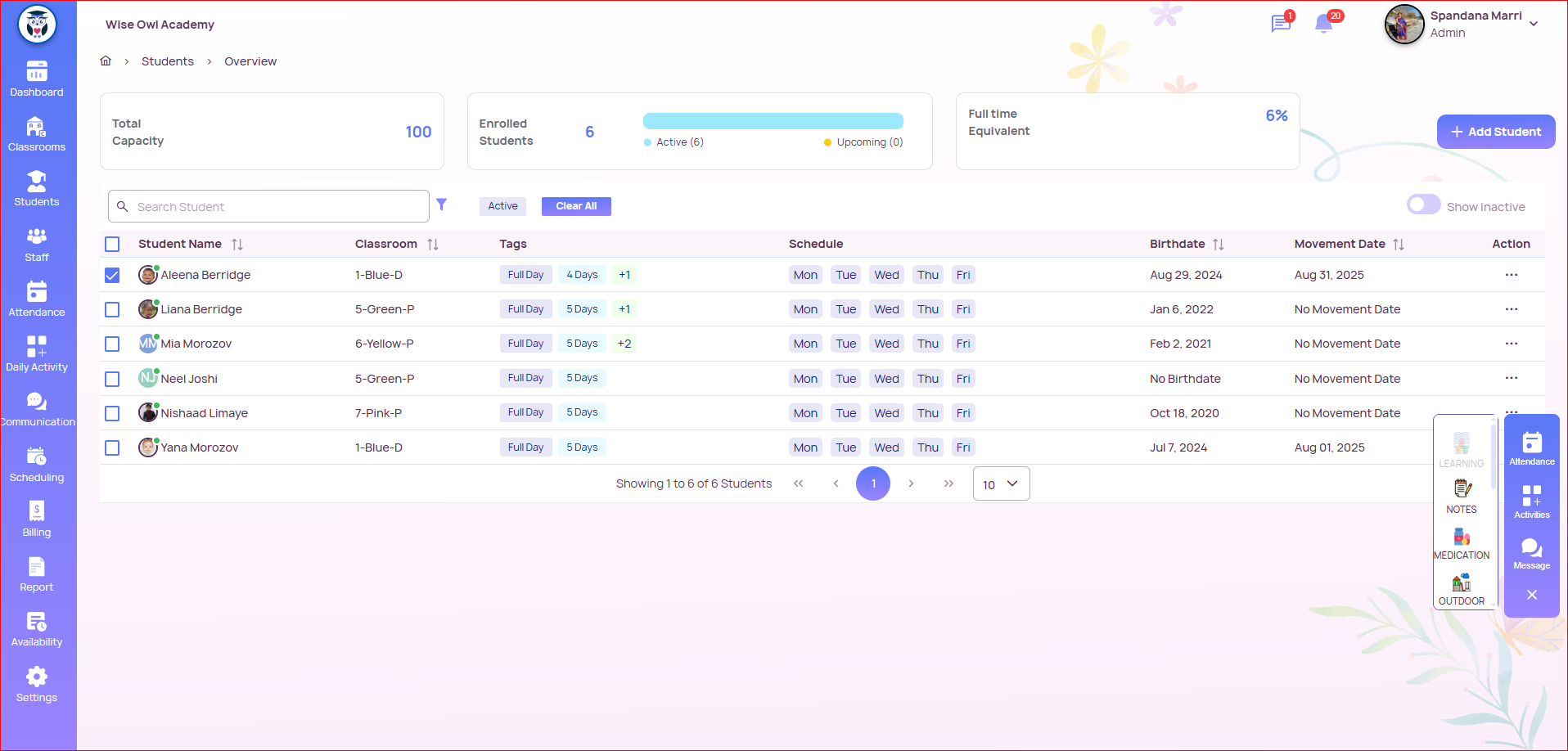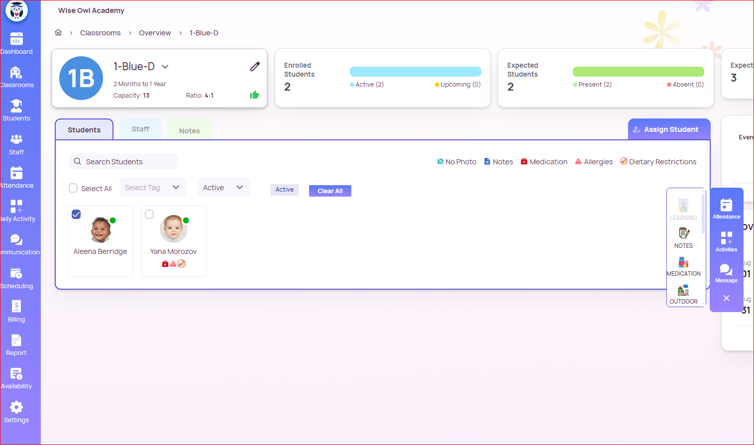 ✅ Method 1: From the Classroom Profile Go to the Classrooms section from the left sidebar. Select the classroom where the staff member(s) are assigned. In the classroom profile, locate the staff list. Click the checkbox next to the staff member(s) ...