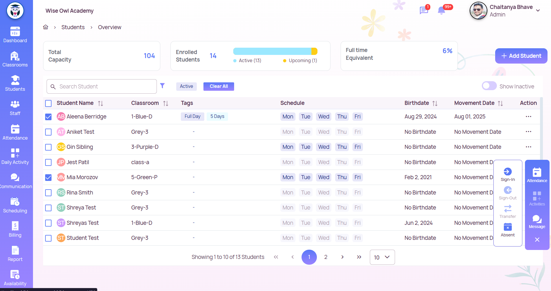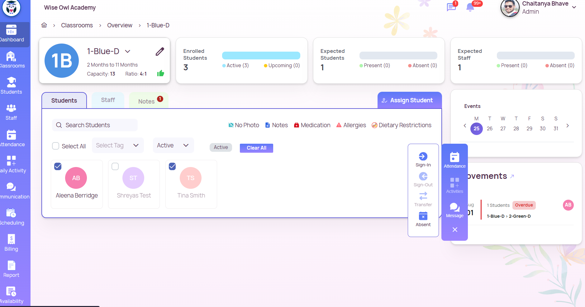 ✅ Method 1: From the Classroom Profile Go to the Classrooms section from the left sidebar. Select the classroom where the staff member(s) are assigned. In the classroom profile, locate the staff list. Click the checkbox next to the staff member(s) ...