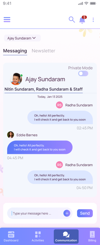 You’ll see all messages with staff members (admins, teachers etc.) associated with your child’s classroom.