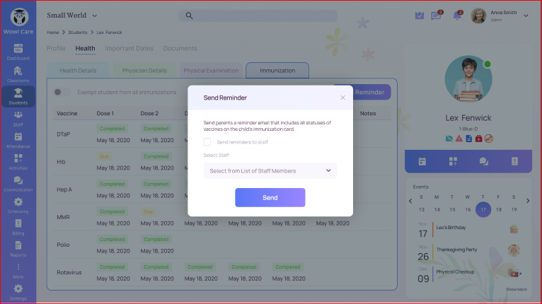 How to Send an Immunization Reminder to Parents or Staff?